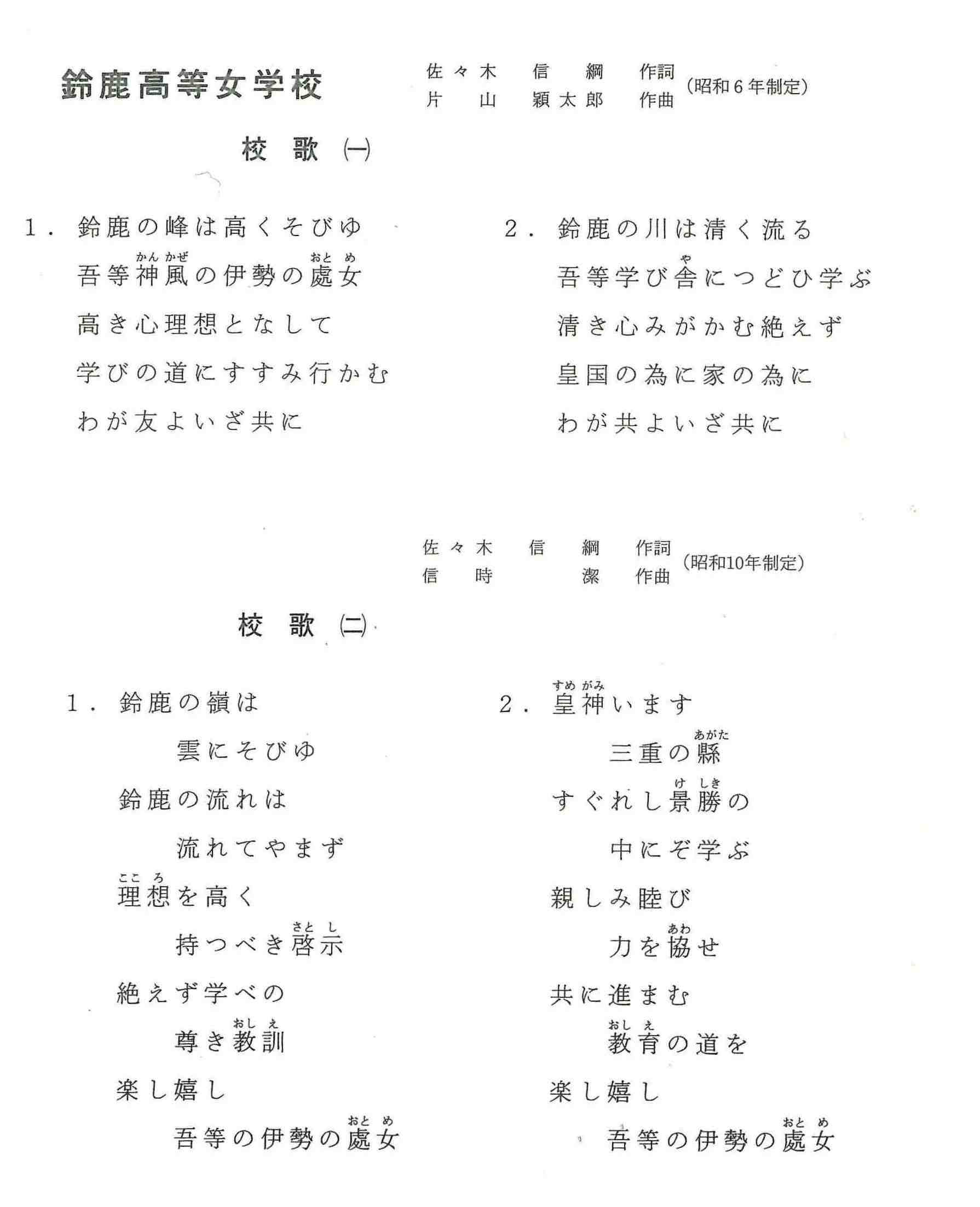 鈴鹿高等女学校の校歌